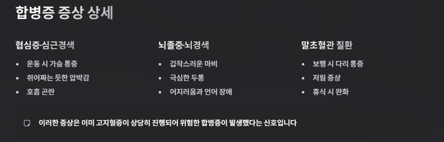 - 주요 증상: 갑작스러운 한쪽 팔다리 마비, 극심한 두통, 어지러움, 언어 장애