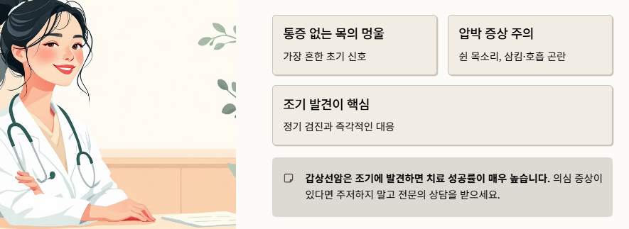 오늘은 갑상선암을 의심할 수 있는 주요 증상과 위험 요인, 검사 방법 등을 상세히 안내합니다.