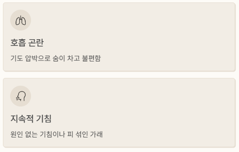 - 지속적인 기침: 특별한 원인 없이 기침이 계속되거나, 피가 섞인 가래가 나올 수 있습니다.