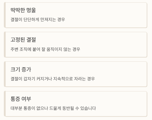 - 결절이 딱딱하게 만져지는 경우