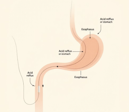 - 증상: 위산이나 위 속의 음식물이 목이나 입안까지 거꾸로 올라오는 느낌입니다.