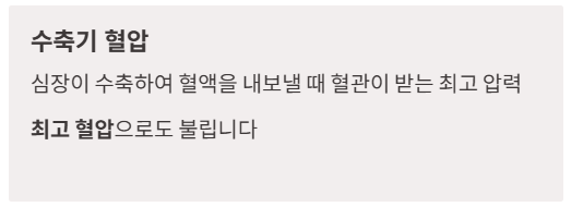- 수축기 혈압 (최고 혈압): 심장이 '수축'하여 온몸으로 혈액을 내보낼 때 혈관이 받는 가장 높은 압력입니다.