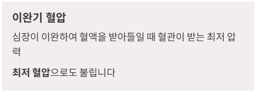 - 이완기 혈압 (최저 혈압): 심장이 '이완'하여 혈액을 다시 받아들일 때 혈관이 받는 가장 낮은 압력입니다.