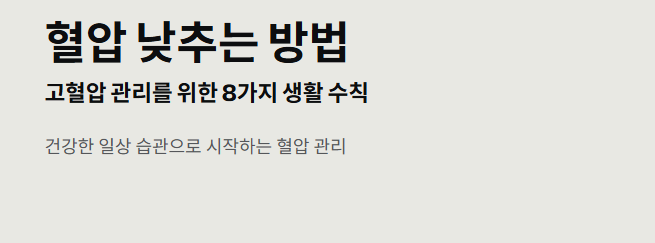 이미 고혈압으로 진단받았거나, 혈압이 정상 수치보다 높게 나와 관리가 필요한 분들을 위해 일상에서 실천할 수 있는 혈압 낮추는 방법과 생활 수칙에 대해서 알아보겠습니다.