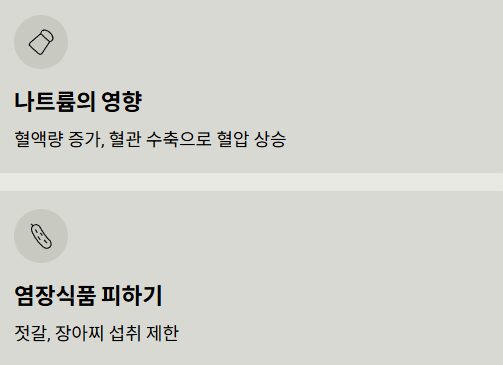 - 젓갈, 장아찌 등 염장 식품 섭취를 제한합니다.