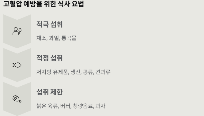 혈압 관리에 있어 가장 중요한 것은 식습관 개선, 특히 나트륨(소금) 섭취를 줄이는 것입니다.