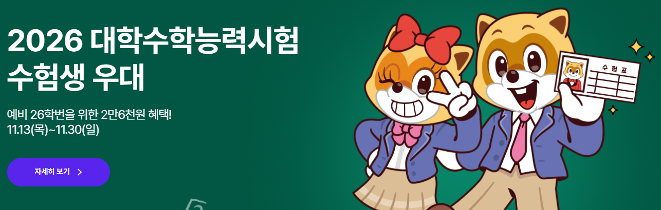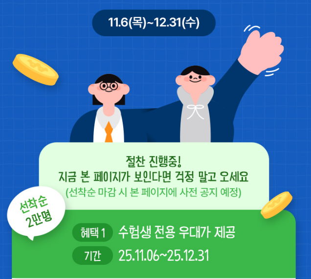 - 수험생을 위한 경품 추천 이벤트 진행(25.11.14(금)~25.11.30(일))