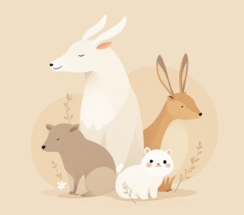 - 특징: 토끼는 착하고 온순한 성품을 상징하며, 꾀가 많아 위기를 지혜롭게 넘기는 동물로 묘사됩니다. 달 속에서 방아를 찧는 모습처럼 이상향과 장수의 의미도 담고 있습니다.