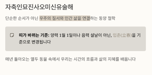 지금까지 12간지 동물 순서와 각 띠가 가진 상징, 시간의 의미, 그리고 흥미로운 유래까지 알아보았습니다. 자축인묘진사오미신유술해, 이 열두 동물은 단순한 순서 나열이 아니라 우주의 질서와 인간의 삶을 연결하는 동양 고유의 철학이 담겨 있습니다.