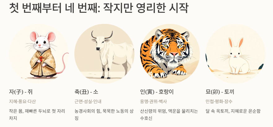 오늘은 12간지 동물의 정확한 순서와 한자, 각 동물이 해당 시간에 배정된 이유와 유래, 그리고 띠별 상징적 의미까지 상세하게 알아보도록 하겠습니다.
