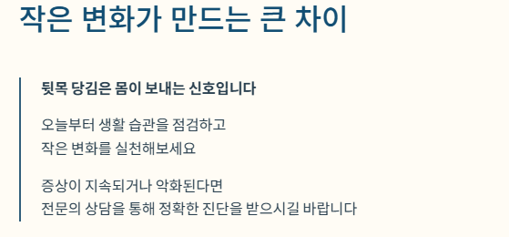 많은 사람들이 이 증상을 가볍게 넘기지만, 사실 뒷목의 당김은 우리 몸이 보내는 경고의 첫 단계일 수 있습니다.
