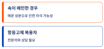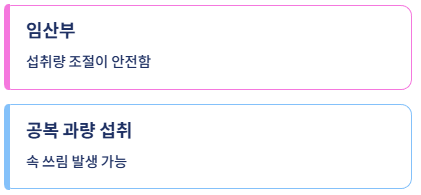 - 공복에 과량 섭취 시 속 쓰림 발생 가능