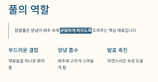 이 풀은 양념이 배추 속에 균일하게 퍼지도록 도와줍니다.