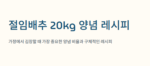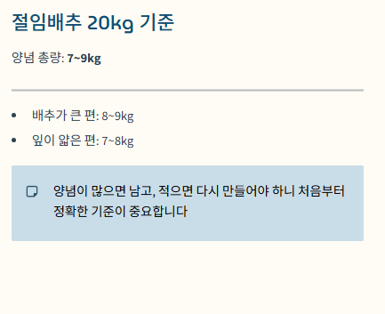 절임배추 20kg → 양념 총량 기준