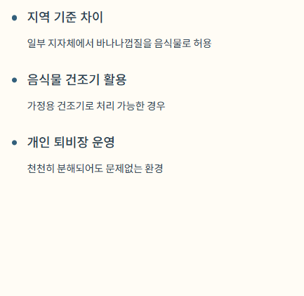 - 지역 기준에 따라 바나나껍질을 음식물로 허용하는 곳이 존재