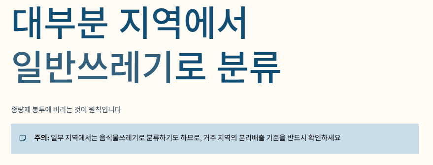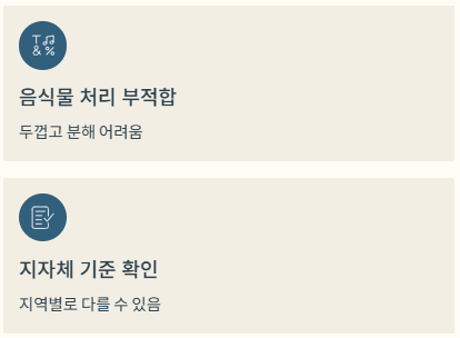 - 일부 지역은 음식물로 허용하므로 지자체 기준 확인이 중요