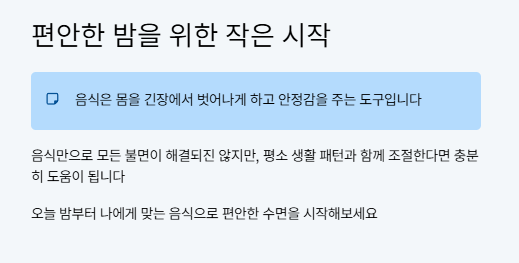 수면을 돕는 음식은 단순히 ‘잠이 오는 성분’이 들어 있어서가 아니라, 몸을 자연스럽게 안정시키는 데 기여한다는 점에서 의미가 있습니다.