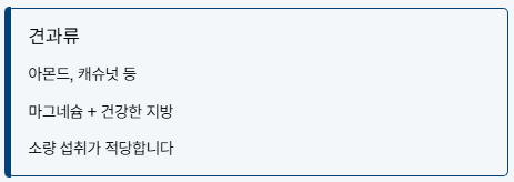 ✅ 견과류(아몬드, 캐슈넛 등)