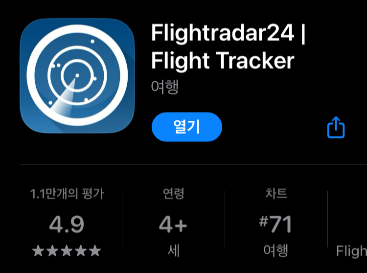 (1) 서비스 이용을 위해 "Flightradar24" 어플을 앱스토어에서 다운로드합니다.