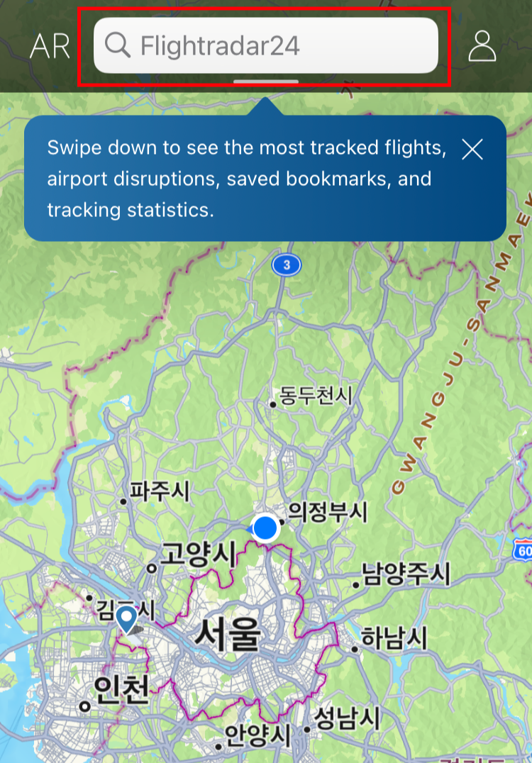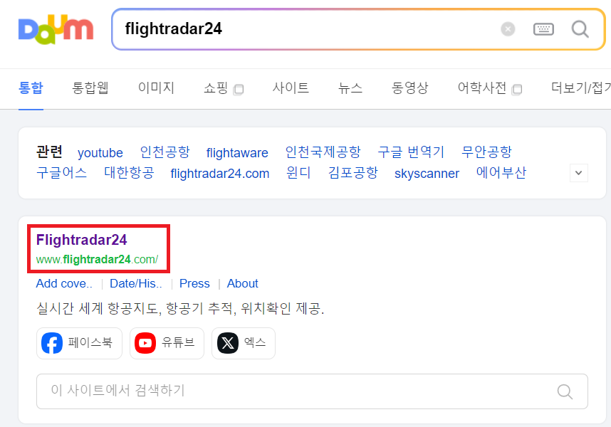 (1) 위의 링크 또는 인터넷 검색을 통해 "Flightradar24"에 접속합니다.