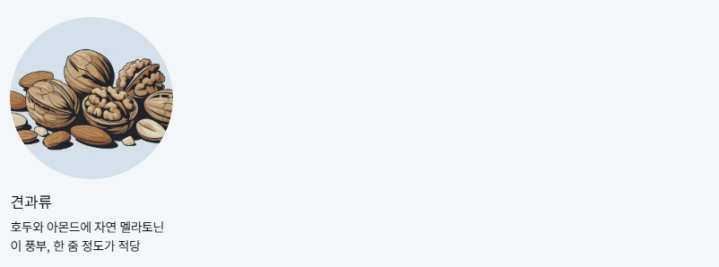 멜라토닌이 충분히 만들어지면 자연스럽게 졸음이 오지만, 스트레스·과도한 조명·불규칙한 생활로 인해 이 균형이 쉽게 깨질 수 있습니다. 그래서 식단을 통해 보완하는 방법이 주목받고 있습니다.