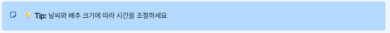 - 절임 후 2–3회 헹구고 물기 충분히 제거