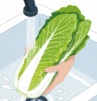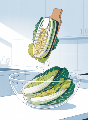 흙이 묻거나 겉잎이 상해 있다면 소금이 배추 속으로 균일하게 스며들지 않아 절임 상태가 고르지 않을 수 있습니다.