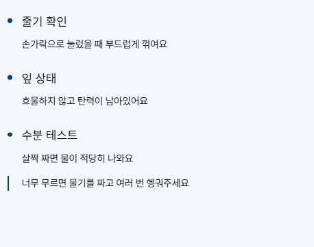 - 줄기를 손가락으로 눌렀을 때 부드럽게 꺾이는 느낌