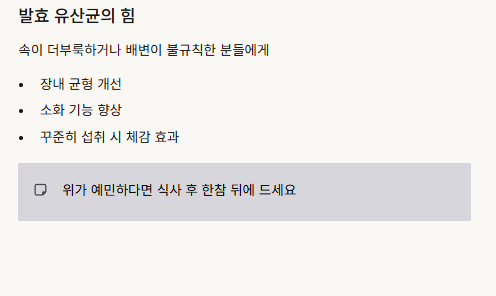 이는 발효 유산균과 섬유질 덕분에 장 환경이 개선되는 데서 비롯됩니다.