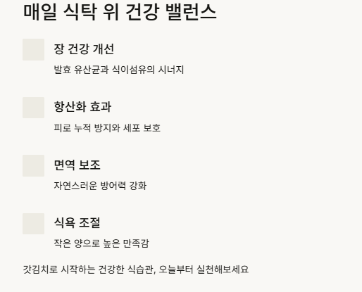 갓의 매운맛과 발효 유산균이 함께 작용하며, 식습관과 몸 상태에 따라 다양한 방식으로 활용할 수 있습니다.
