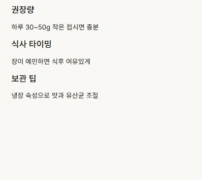- 보관법: 지나치게 익으면 맛과 유산균이 달라지므로 냉장 숙성으로 조절.