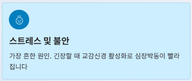 - 다만 어지러움·흉통과 함께 나타나거나 반복된다면 전문 검진이 필요합니다.