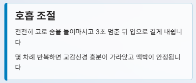 - 가벼운 증상 대부분은 호흡 조절, 생활습관 개선만으로도 충분히 나아질 수 있습니다.