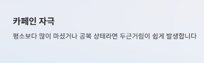 평소보다 많이 마셨거나 공복 상태에서 섭취했다면 두근거림이 더 쉽게 나타날 수 있습니다.