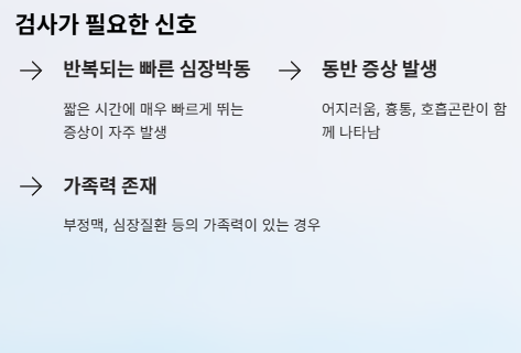 - 가족력이 있는 경우(부정맥, 심장질환 등)