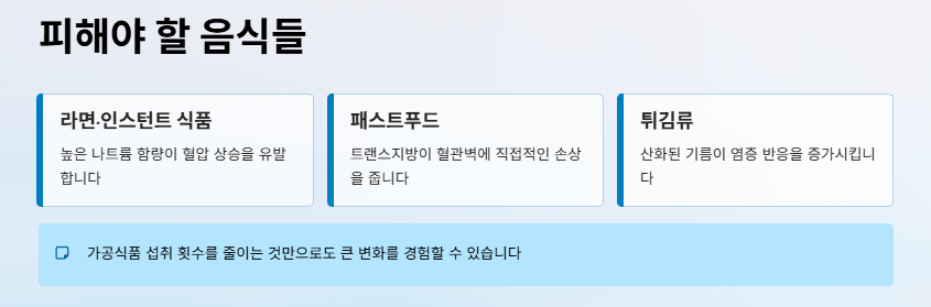 트랜스지방이나 나트륨이 과도한 음식은 혈관 손상에 직접적인 영향을 줍니다.