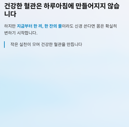 건강한 혈관은 하루아침에 만들어지지 않습니다. 하지만 지금부터 한 끼, 한 잔의 물이라도 조금 더 신경 쓴다면 몸은 확실히 변하기 시작합니다.