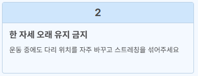 운동 중에도 가끔 다리 위치를 바꾸고, 스트레칭을 섞어주는 것이 좋습니다.