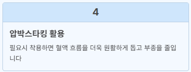 운동 시 혈액 흐름을 더 원활하게 돕고 부종을 줄여줍니다.