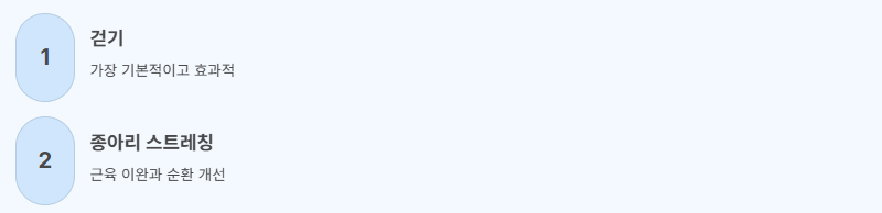 종아리 근육이 수축할 때 혈액을 위로 밀어 올리기 때문에, 적절한 운동은 증상 완화에 큰 도움이 됩니다.