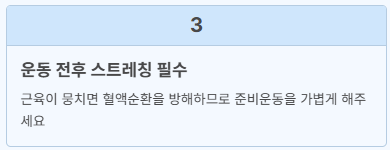 근육이 뭉치면 오히려 혈액순환을 방해하므로 준비운동을 가볍게 해주는 것이 좋습니다.