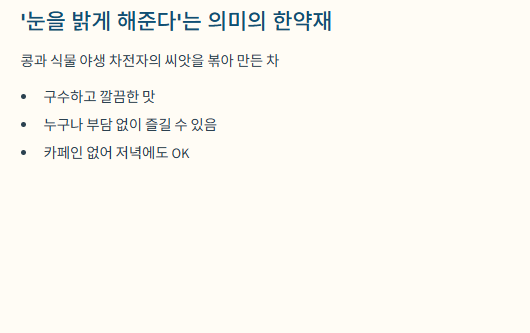 일반적으로는 볶은 결명자를 우려 마시면 향도 부드럽고 소화도 편안합니다.