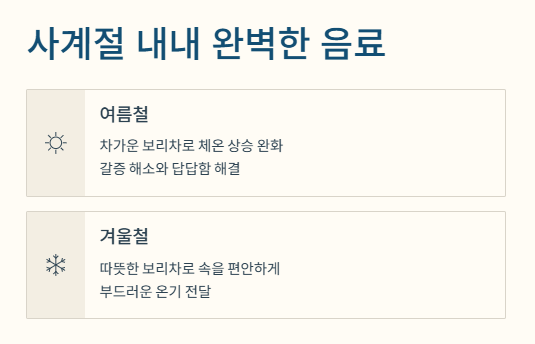 하지만 보리차는 단순한 ‘대용 음료’가 아니라, 몸의 균형을 부드럽게 잡아주는 기능성 음료에 가깝습니다.