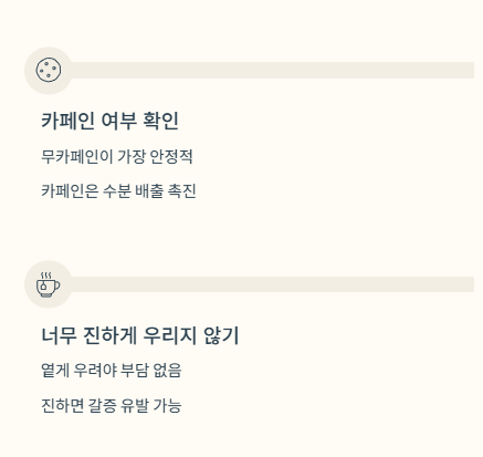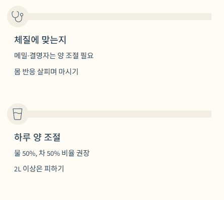 물 대신 마실 차는 되도록 무카페인이 안정적입니다.