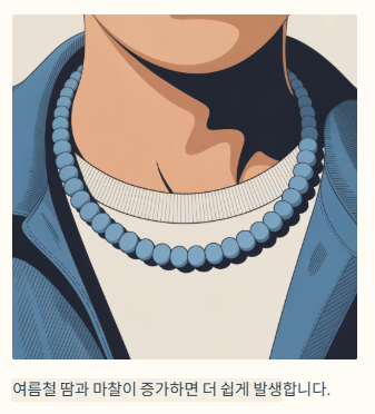 특히 여름철처럼 땀이 많고 마찰이 증가하는 계절에 더 쉽게 나타납니다.