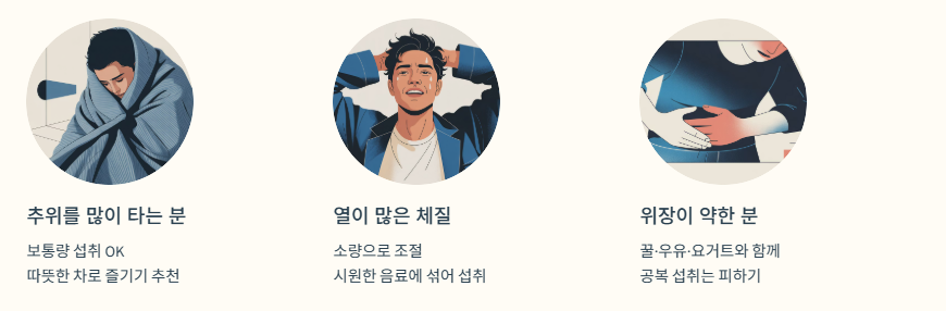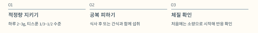 체질별 반응이 다르니 처음에는 적은 양으로 시작해 몸의 반응을 확인해야 합니다.