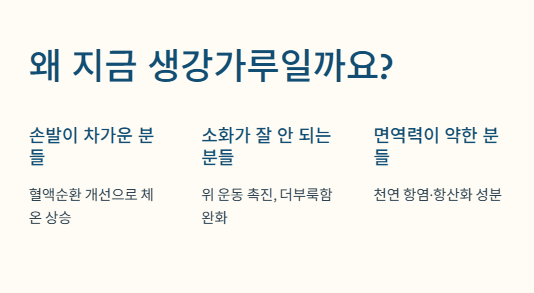 아래에서 생강가루의 장점, 체질별 주의사항까지 한 번에 정리해드립니다.
