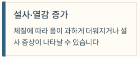 체질에 따라 몸이 과하게 더워지거나 설사가 나타날 수 있습니다.