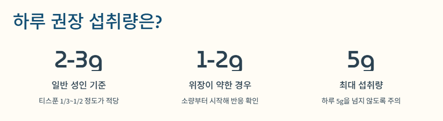 특히 평소 위가 약한 사람은 소량부터 시작하는 것이 좋습니다.