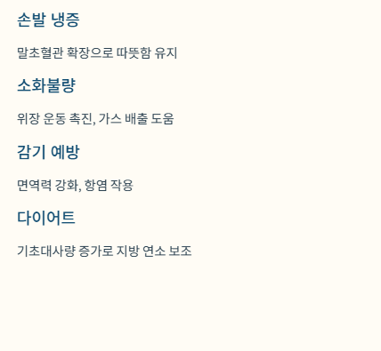 생강의 대표 성분인 진저롤·쇼가올은 체온을 높여 혈액순환을 촉진합니다.